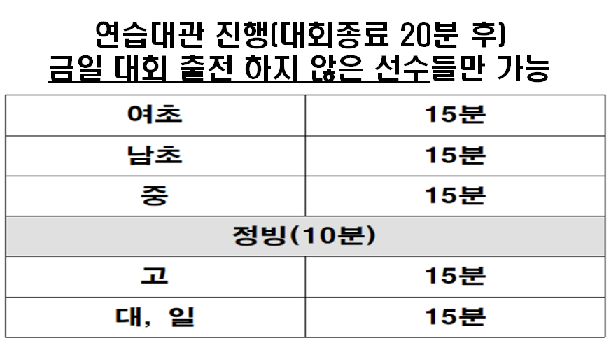 - 1, 2, 3일차 경기 종료 후 연습대관 진행