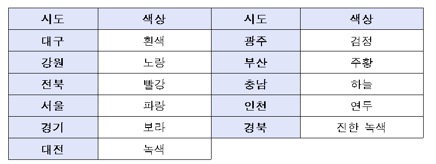 □ 시도별 계주 조끼 색상