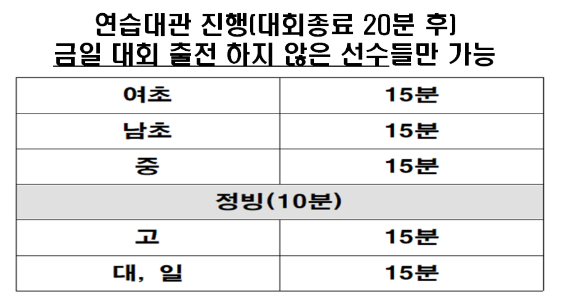 - 3일차 경기 종료 후 연습대관 진행