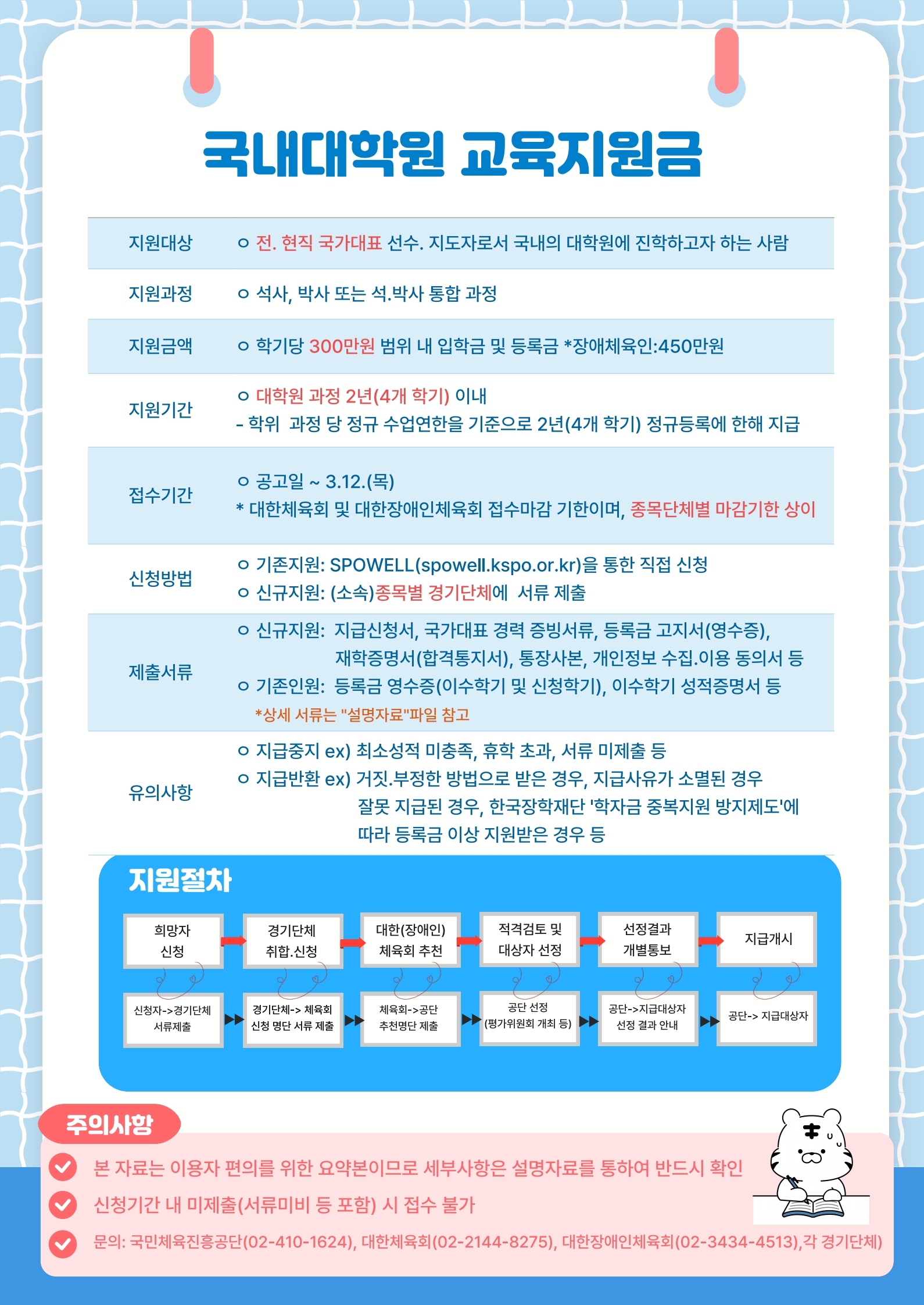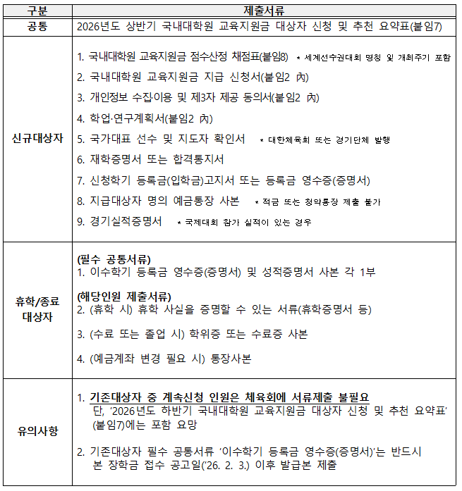 「2026년도 상반기 국내 대학원 교육 지원금」 신규 대상자를 아래와 같이 모집합니다.